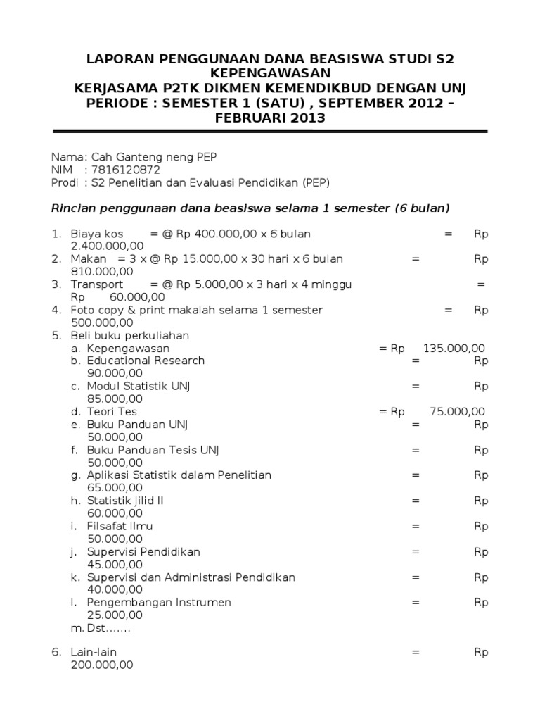 Format Laporan Lpj Beasiswa Kuliah 2014 from imgv2-2-f.scribdassets.com Check spelling or type a new query. We did not find results for: Maybe you would like to learn more about one of these?