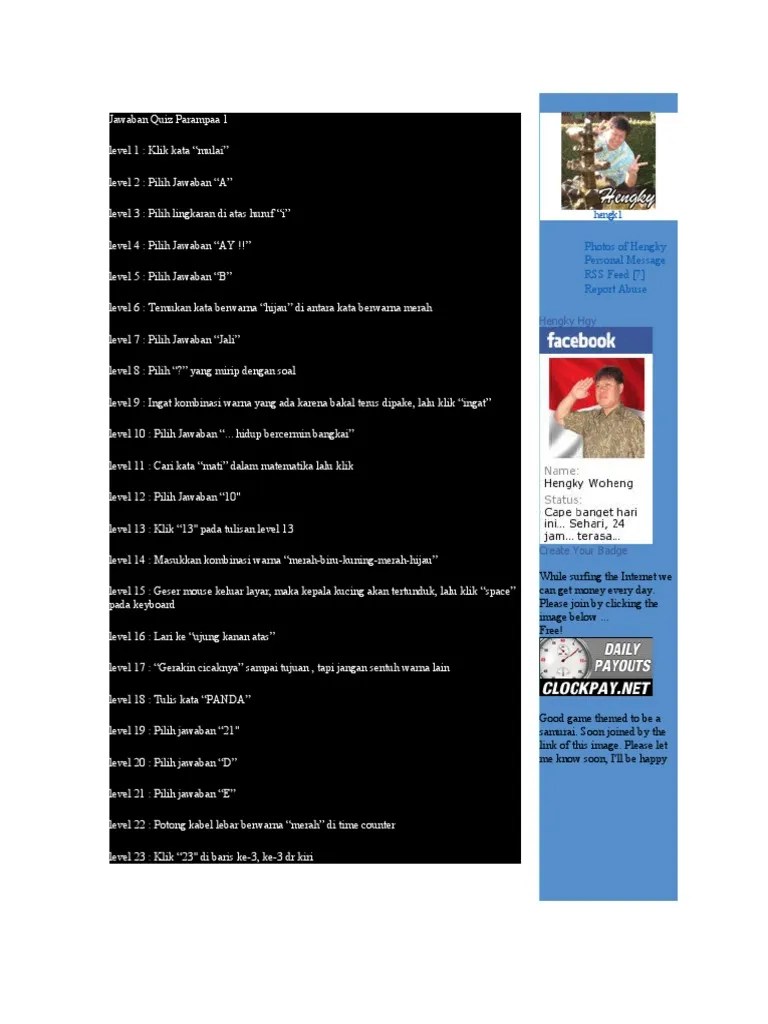 Jawaban lengkap quiz parampaa 1,2,dan kita semua jawaban quiz parampaa 1, 2,. Diantara 2 itu lah, ternyata jawabanya adalah klik tab. Riddles puzzle game we are ready to help you. Under photo with solved level you can . Itu tadi kunci jawaban parampaa 1 dan 2 serta password naik level, semoga menambah seru.