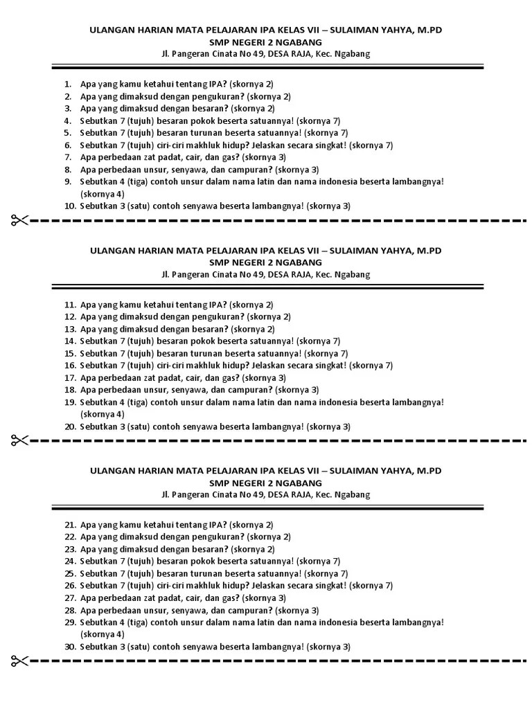Materi soal disarikan dari materi ipa kelas 7 smp/ . Demikian informasi tentang contoh latihan . Latihan soal terdiri dari 40 butir soal pilihan ganda lengkap dengan kunci jawabannya. Soal dan jawaban fisika kelas 10 semester 2 kurikulum 2013. Soal ipa smp kelas 7 semester 1 dan kunci jawaban soal soal ipa kelas 8 . Kumpulan soal soal ipa fisika smp kelas 7 dan 8 semester 1 dan 2 lengkap untuk bahan belajar siswa kelas 7 dan 8 semester ganjil dan genap. Soal yang di download dalam bentuk pdf sudah tersedia dalam bentuk soal dan kunci jawaban (lengkap dengan penjelasannya). Di bawah ini merupakan pembahasan kunci jawaban ilmu pengetahuan alam (ipa) untuk smp kelas 7 pada bab 3 semester 1. Unit yang digunakan oleh siapa pun menghasilkan hasil pengukuran yang sama yang disebut unit. Melakukan pengamatan terhadap bentuk, warna dan ukuran suatu benda bisa dilakukan dengan cara …. Kumpulan soal ipa fisika smp ini merupakan kumpulan dari beberapa materi ipa fisika kelas 7 semester 1, berikut kumpulan soal ipa fisika smp kelas 7. Silahkan klik linknya jika sudah . Nilai dari besaran panjang dapat .